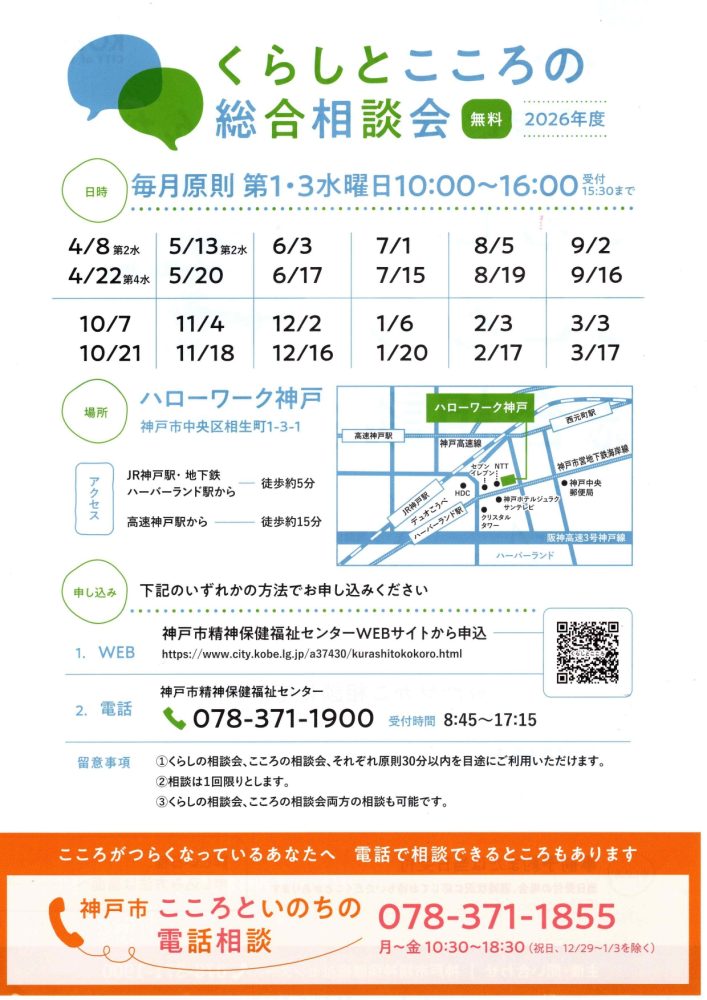 コロナウイルスに関して相談したい方は、神戸市の新型コロナウィルス専用健康相談窓口(電話番号078-322-6250)に連絡してください。