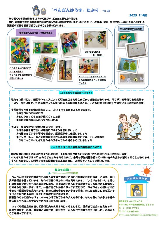- 「ぺんぎんはうすたよりvol.22」を発行しました。